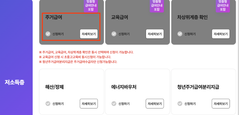 c. 저소득층 분야에서 '주거급여' 클릭 후 신청서 작성