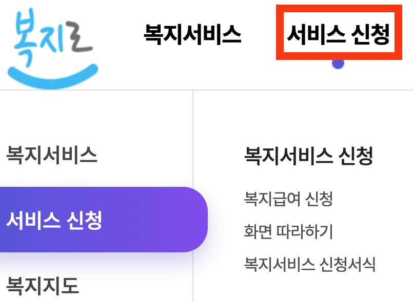 복지로 사이트에 접속하셔서 '복지 서이비 신청하기'를 클릭